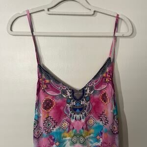 Moda Baronessa Women’s Ponce Dress S Pink 100% Silk Bohemian Colorful Artsy NWT