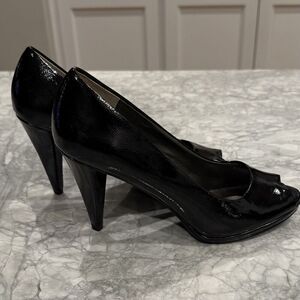 Moda Black Patent Leather Platform Heels Open Toe Size 7.5