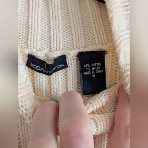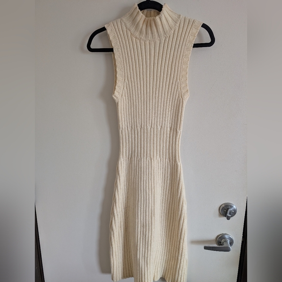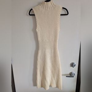 Cream ribbed knit dress. Sleeveless design with slight turtleneck.