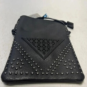 Moda CrossBody Bag Vegan Leather Embellishment Pattern Zip Closure nwot brown lined interior
