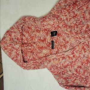 Beautiful knit work or reds, tans, light pinks, and grey.