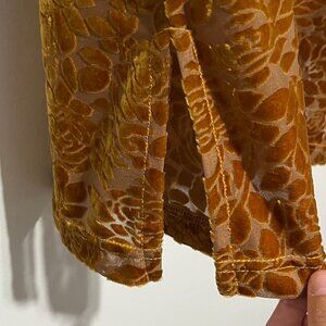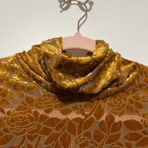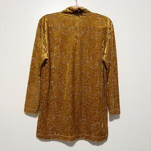 Moda INTL Womens Burnout Velvet Tunic Sz M/L Gold Floral Bohemian Artsy Festival