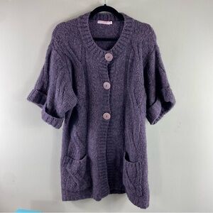 Moda Immagine Women’s Purple Short Sleeve Cable Knit Button Front Cardigan Sz M