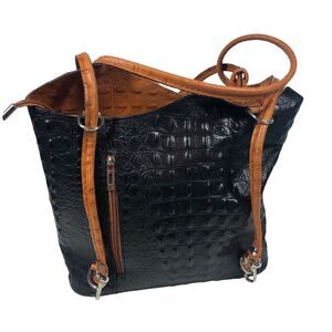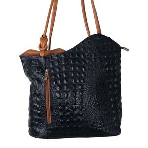 Moda In Pelle Purse Womens Black Ostrich Pattern Italian Leather Tote Backpack
