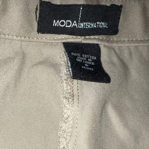 Moda International, 8P, tan pant ,button zip latch hook closure 100% cotton L=38