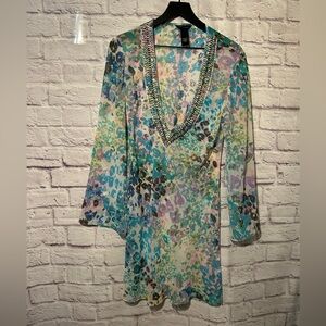 Moda International Abstract Print Coverup Beach Dress Size Large