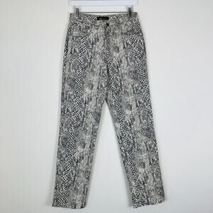 Moda International Black White Snake Print Straight Leg Pants Size 8 Petite