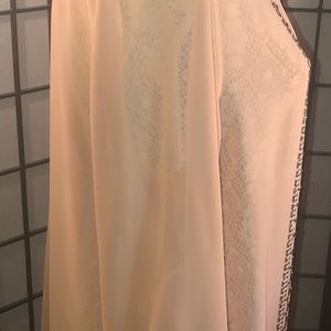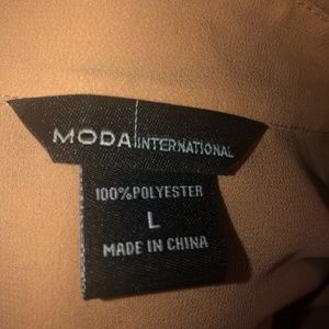 This blouse is a beauty! A long sleeve, blush, long sleeve button down blouse by Moda International w/ a sparkly sequined embellishment down the front middle of the blouse. This blouse fits very comfortably and can be easily dressed up/down.