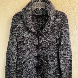 Moda International Cardigan Sweater XS Marled Blue Wooden Toggle Buttons