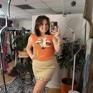 Moda International Crochet Openi Knit Pencil Mini Skirt Tan Size Small