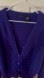 Beautiful deep-purple fuzzy cardigan sweater with crystal-style buttons. Soft, warm, and lightweight—perfect for layering in cooler weather.