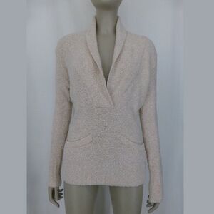 Description: Previously Owned. Still in good condition. Long Sleeve. Two Pockets at front, they're functional but not deep. Deep V-Neck.