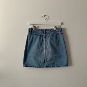 Embrace a retro-chic vibe with this Moda International denim mini skirt, featuring a classic front button-up design. This versatile skirt offers a flattering A-line silhouette that sits comfortably at the waist, providing a timeless look that's perfect for any season. Made from sturdy, high-quality denim, it includes front and back pockets, adding both style and functionality. 90s Fashion