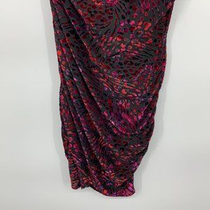 Moda International Dress Womens Size Small Velvet One Shoulder Sleeve Leopard Animal Print Burnout. Great pre-owned condition. Inside lining. Stretch.