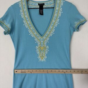 Moda International Dress Womens Medium Blue Embroidered Y2K Beachy Boho Coastal