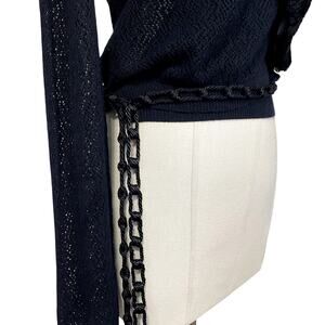 Unique wrap cardigan with chain rope and faux fur neckline