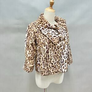 Moda International Faux Fur Lady Jacket Leopard Print Extra Small Cropped Y2k