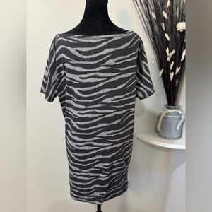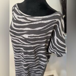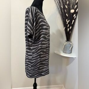 Moda International Gray Zebra Print long Tee with Short sleeves size Medium