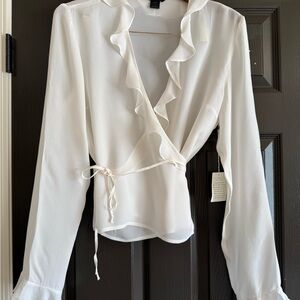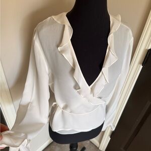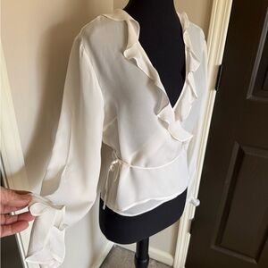 Moda International Ivory Ruffle Wrap Blouse