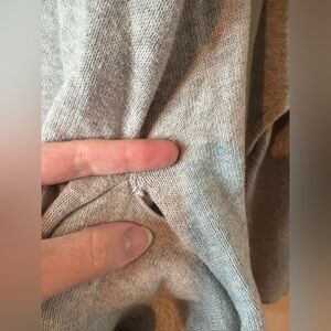 *Please note there is a tiny pull on the sleeve (shown in photo 3). There is small hole on the inside lining of one of the pockets (shown in photo 4). Price reflects these flaws.*