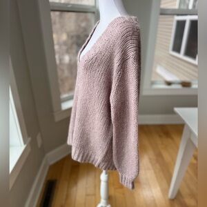 Moda International Mauve Purple Pink Oversized V neck Tunic Sweater Size Large