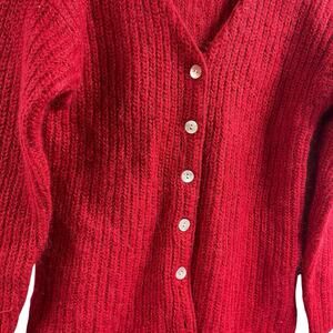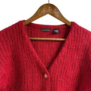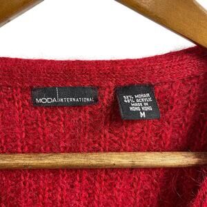 Moda International Red Mohair Blend Knit Cardigan Sweater Medium Vintage