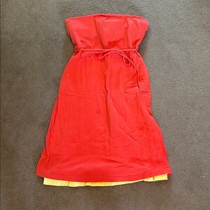 Chic red dress with a stylish yellow lining. Ideal for any occasion.