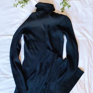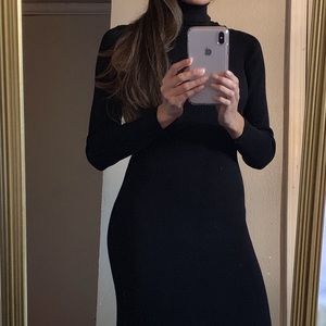 Long sleeve ribbed turtle neck dress in black. Stretchy material. Size tag is almost coming off as seen on last pic. Otherwise in great condition.
