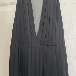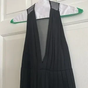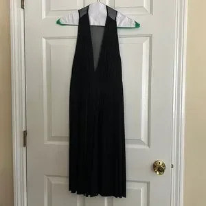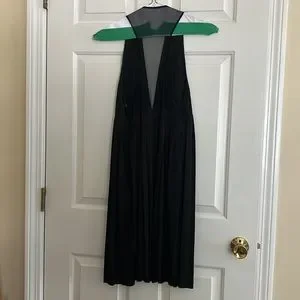 Super cute dress from Moda International. Ruffled throughout. Mesh upper straps and razor back. Deep V neck. Side zipper. Thick waistband in back. 68% rayon, 32% polyester. Worn a couple of times, in good shape!