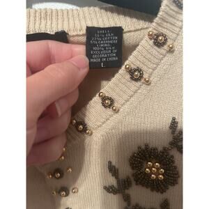 Moda International Silk Cashmere and Cotton Blend Beaded Sweater