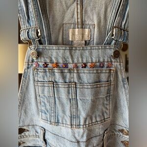 Size small. Vintage denim overalls. Good condition, but they do have some light yellowing in a few areas and a small mark on one knee. I have not treated them. Please see pictures.