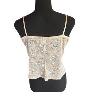 Moda International Cream Lace Cami – Nude/cream stretch lace with scalloped edge and adjustable straps.