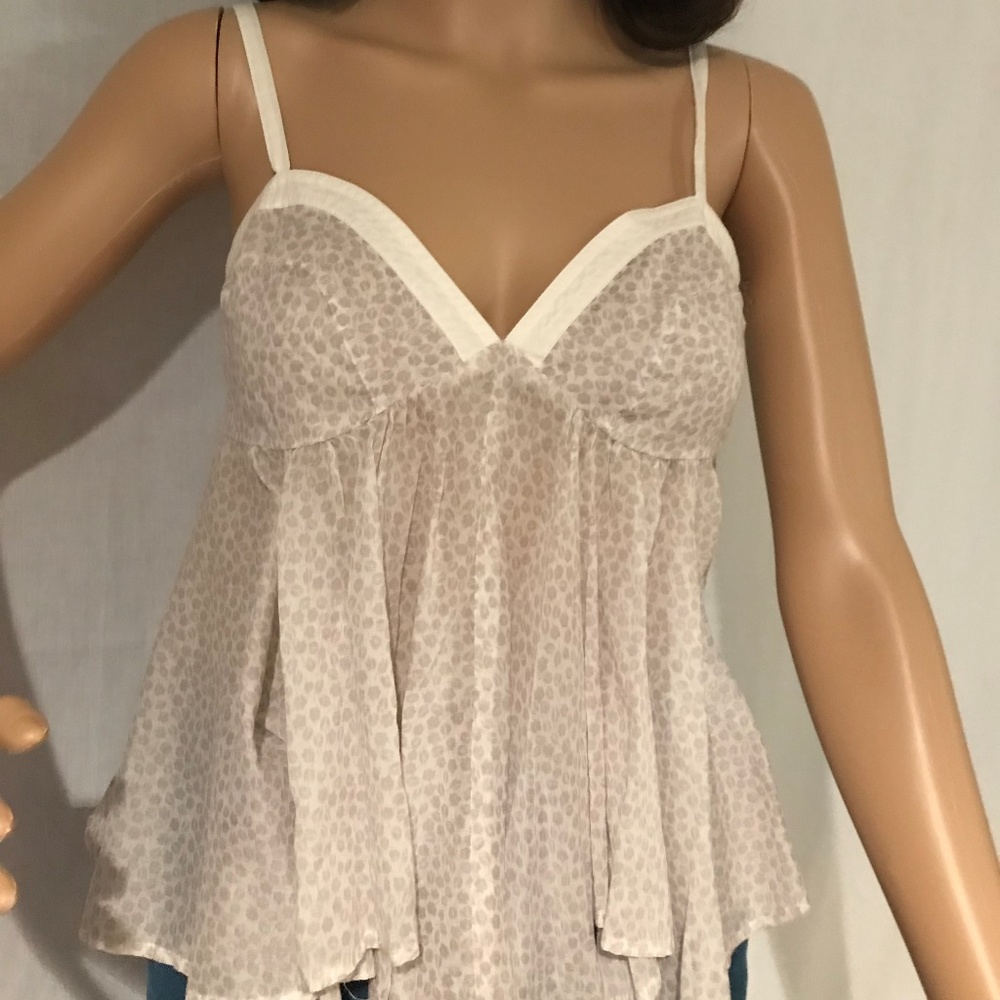 Light cotton gray and white babydoll top with handkerchief hem. Never worn.