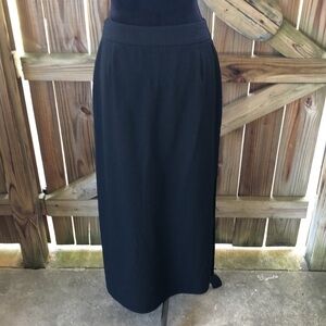 Black Wool Maxi Length Skirt by Moda International From Victoria’s Secret. Unlined, Hidden Side Zipper with Hook & Eye Closure. Two Side Slits, One on Each Side.