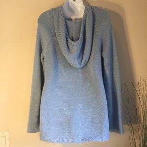 Moda International Vintage Baby Blue Hooded Pullover Ramie Cotton Sweater Size S