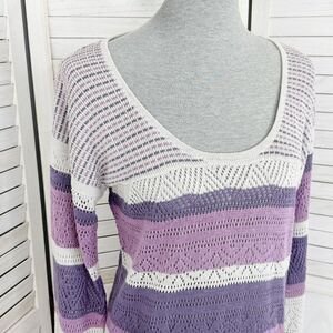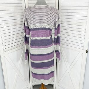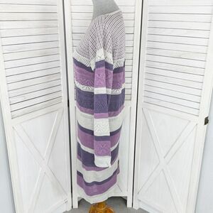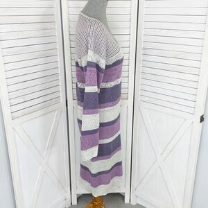 Moda International Vintage Linen Knit Striped Sweater Dress Purple Grey Medium