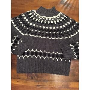 Moda International Vintage Sweater Womens Medium Gray Fair Isle Nordic Ski Y2K
