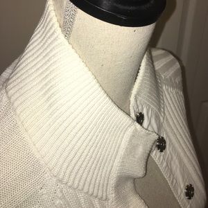 Excellent used condition, purchased from Victoria's Secret catalog, nice and well made cable knit sweater jacket, side pockets, snap button closure