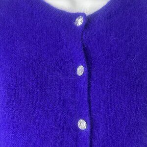 Moda International Womens Angora Button Up Cardigan Sweater in Purple Size Small