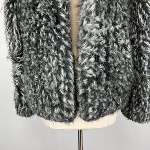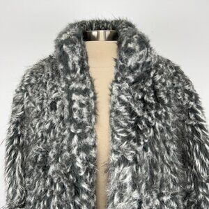 Moda International Womens Gray Faux Fur Teddy Jacket Open Front size Medium