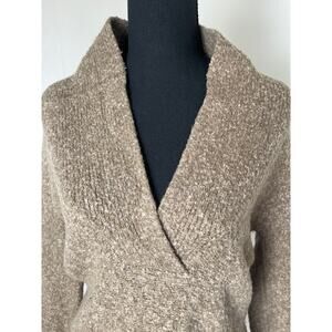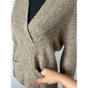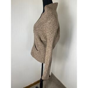 Moda International Women's Wool Blend Tick Knit Preppy Pocket Sweater Brown L