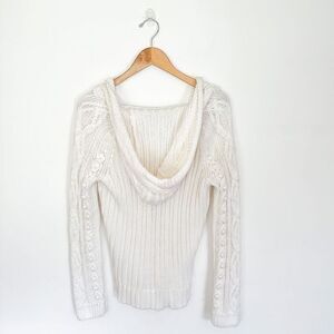 Moda International Women’s Y2K Girlies Cream Off White 3D Cable Knit PomPom Hood