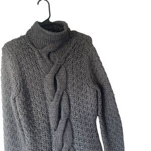 Moda International Y2k Large Metallic Wool Blend Fisherman Chunky Knit Sweater