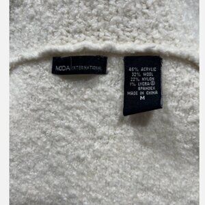 The Moda International cardigan sweater in brown, size M, is a vintage wool blend piece that exudes classic style. With a solid pattern and long sleeves, this knit sweater is perfect for adding a touch of elegance to any outfit. Made for women, this cardigan is a versatile and timeless addition to any wardrobe. Very, very light stain on the inside extremely hard to see.