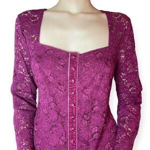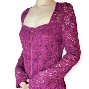 The prettiest purple Moda International lace velvet button front fairy long sleeve top💜