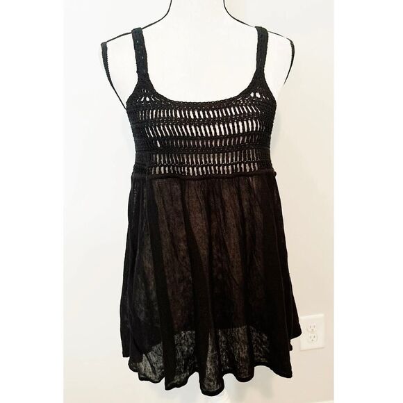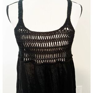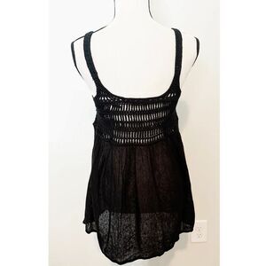 Moda International Black Sleeveless Scoop Neck Crochet Tank Top Size M