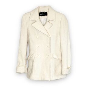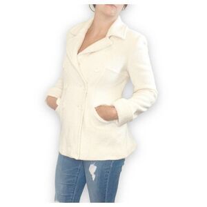 Very good preowned condition. No stains, flaws. Minor signs of wear. Purchased from the Victoria Secretary website around 2009. Great classic. Off white, cream/ivory color. Double breasted button pea coat.