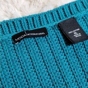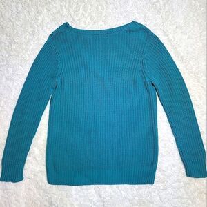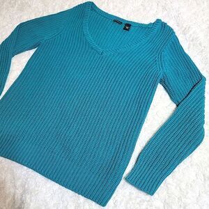 Moda International Teal Ribbed Chunky Knit V-Neck Long Sleeve Sweater;