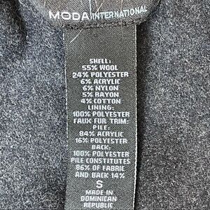 Moda International Wool Blend with Fur Collar Coat. Beautiful wool blend coat with removeable faux fur collar. Very flattering ans perfect for fall, winter ans esrly spring. Smoke free home. Lined, pockets. Flat measurements: length 39, pit to pit 18”, shoulder to shoulder 16”, length sleeve 25”, hips 20”. Thank you for stopping by my closet! Ships Same/Next Day - Bundle & Save -2 or more items 20% Off! - for Price Drops/Private Offers! Happy Poshing!