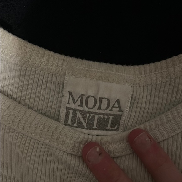 Stylish cream ribbed top by Moda Int'l. Perfect for any occasion.